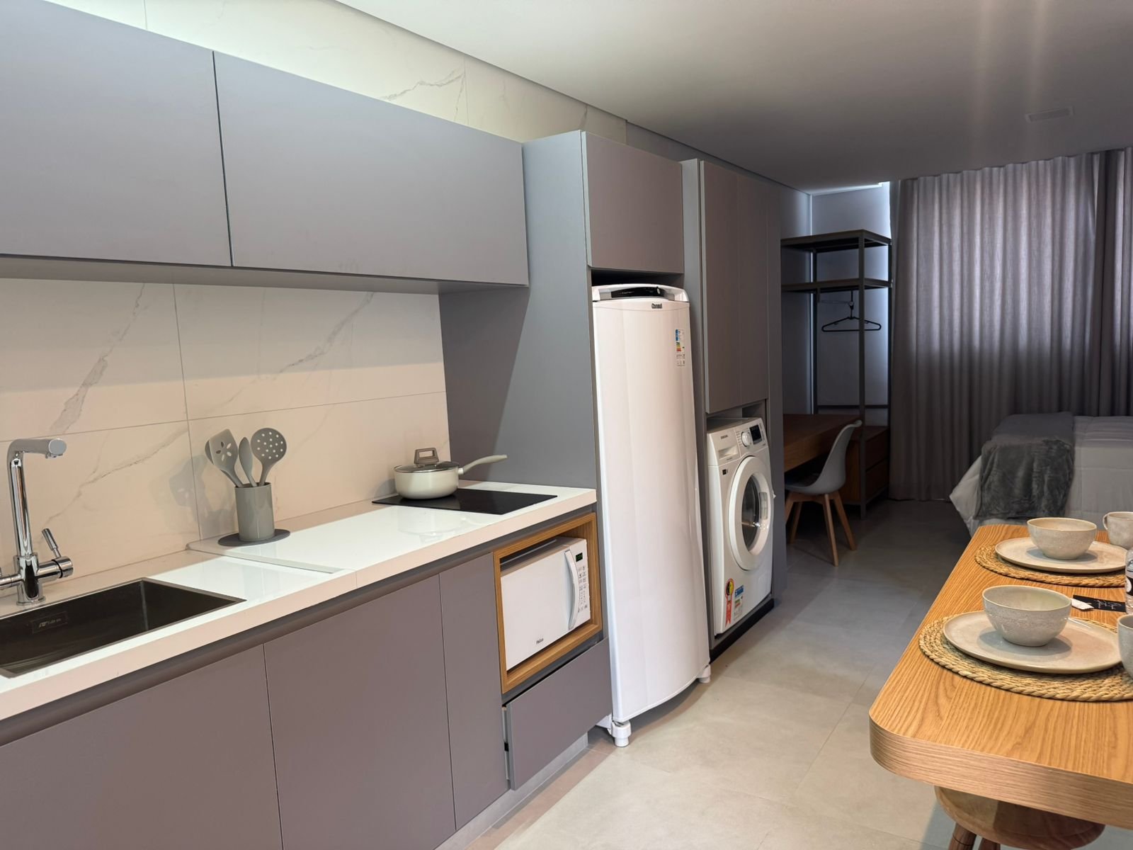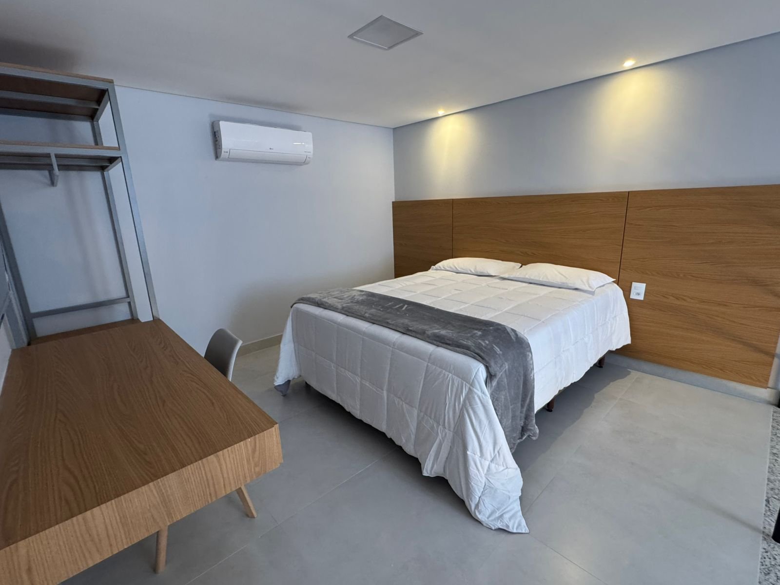 O Studio LIV foi projetado para quem busca praticidade sem abrir mão do conforto. Compacto, funcional e totalmente equipado, oferece cozinha completa, ar-condicionado, Smart TV, Wi-Fi e todos os itens essenciais para uma estadia confortável. Ideal para quem precisa de um espaço inteligente, organizado e pronto para morar desde o primeiro dia.